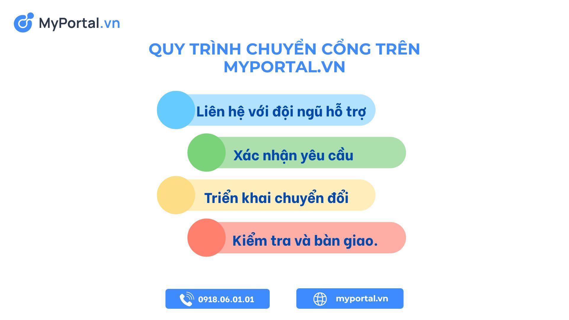 Để thực hiện chuyển đổi từ cổng cũ sang cổng mới với MyPortal.vn, các bước cơ bản bao gồm: