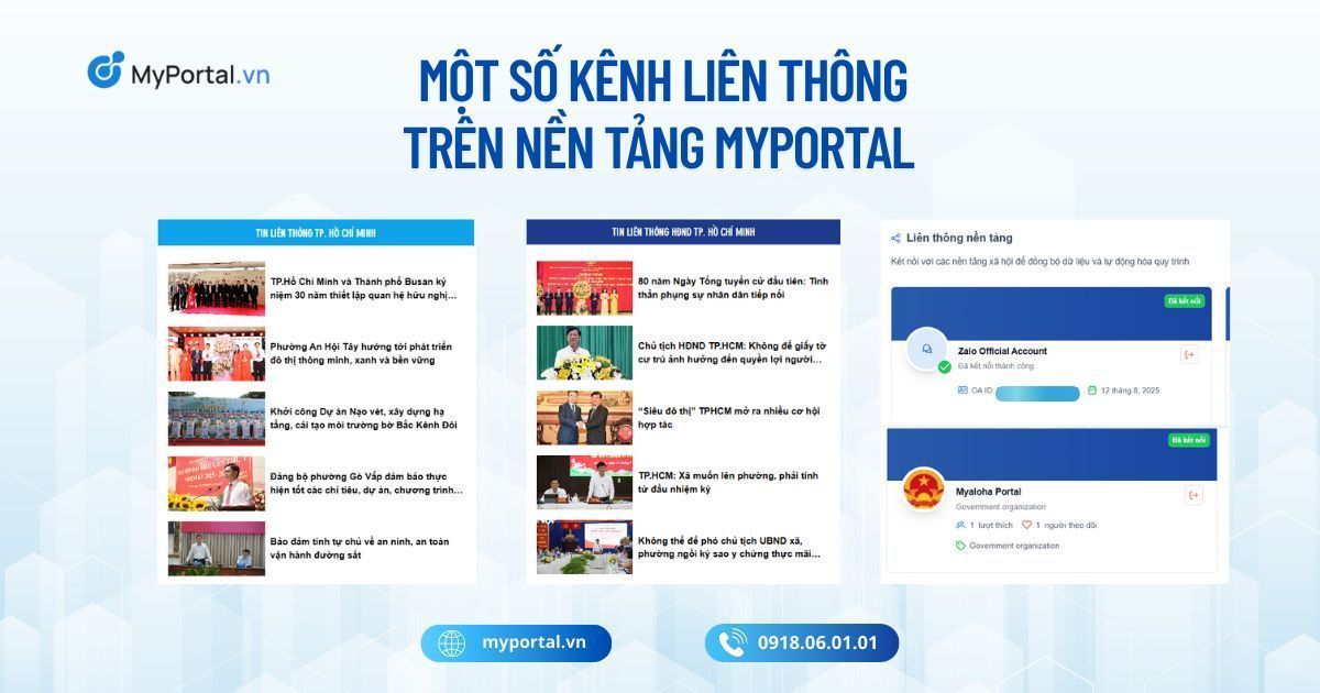 - Ví dụ: Khi chuyên viên đăng bài sự kiện của Đoàn trên Cổng TTĐT của MyPortal thì bài đăng sẽ được tự động đăng lên Zalo OA, cũng như Fanpage của đơn vị.